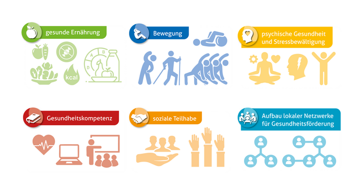 Das Förderprogramm „Mittelpunkt Gesundheit“ orientiert sich an den Thüringer Gesundheitszielen. Die Förderfähigkeit der Vorhaben unterliegt den Regelungen des Leitfadens Prävention des GKV-Spitzenverbands.
